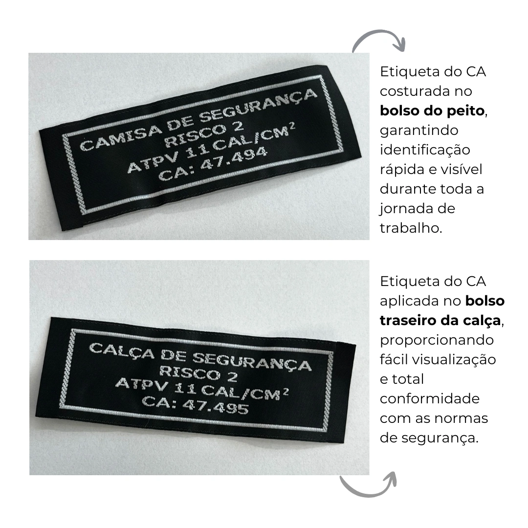 - Identificação bordada de EPI, RISCO e ATPV