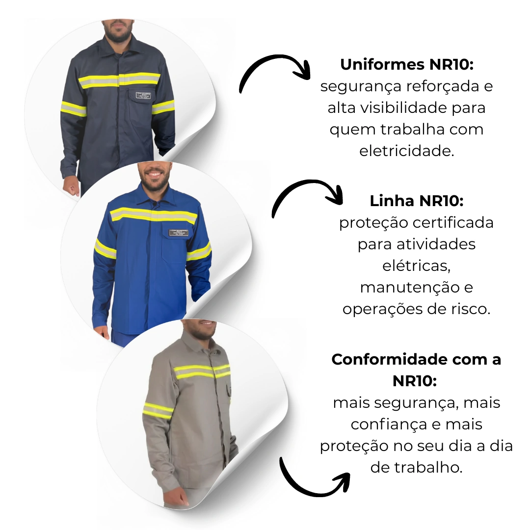 Aposte na segurança, confiabilidade e durabilidade dos uniformes NR10 da Fábrica Uniformes. Este conjunto é a escolha ideal para quem precisa de proteção séria em ambientes de alto risco.
